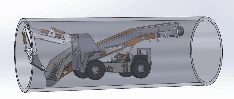要在顶管内工作,必须要求扒渣机机形小,重心低,设计方面能够在顶管弧形断面进行高效率的开挖、掘进、采集、输送、装卸。